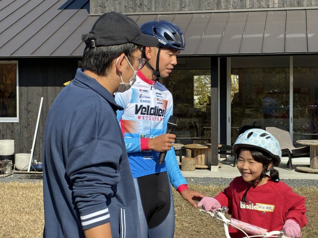 昨年開催された本講座も大好評で、今年は清水監督、桂選手、新開選手の3人が自転車を補助輪なしで乗るコツを優しく楽しく教えに来てくれました。