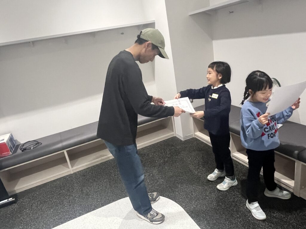 最後は、がんばった子どもたちへパパから賞状のサプライズプレゼント。