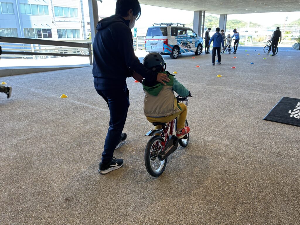 親子で一緒に、自転車を補助輪なしで乗るコツなどを学びました。