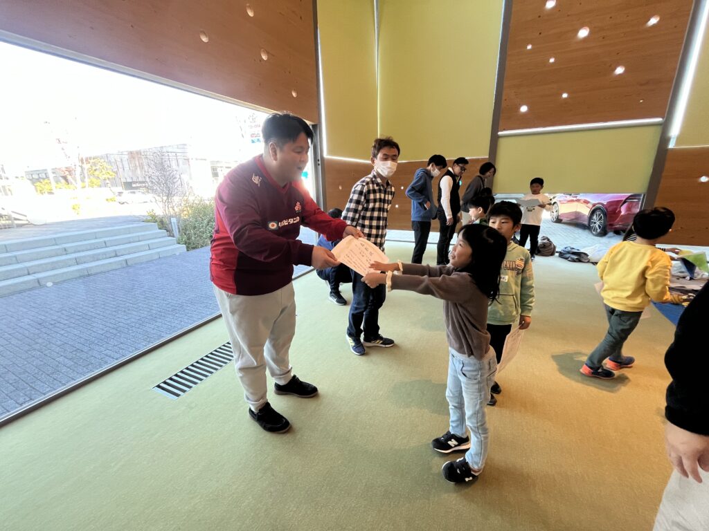 最後は、一生懸命練習したお子さまへ、パパから賞状のサプライズプレゼント!