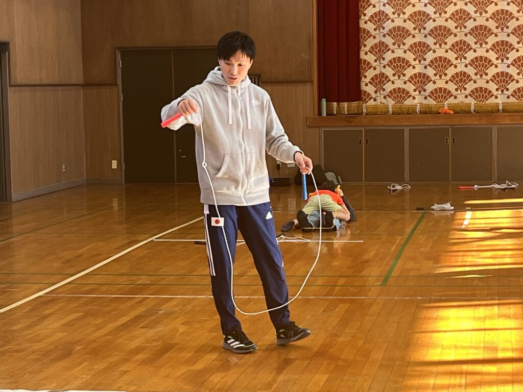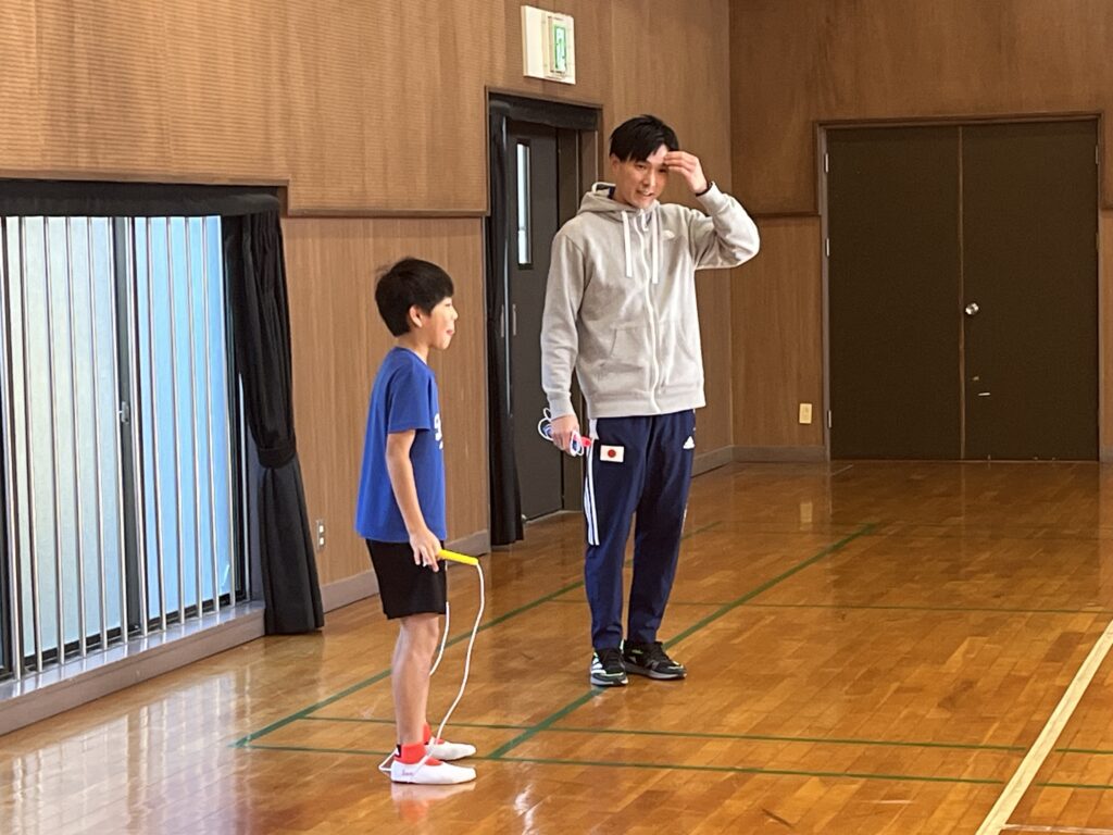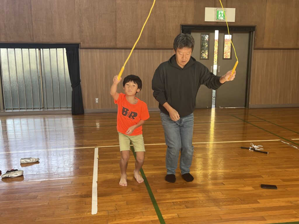 講師は、一般社団法人愛媛県なわとび協会の岡本さんとその息子さん。