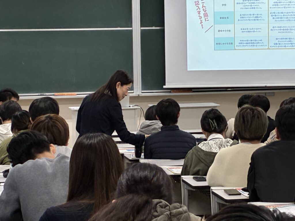 まとめとして講師からは、作ったワークシートは後で見直すことが大切、もう一度記入してみて自分の書いた内容を振り返ってください、と学生に伝えました。